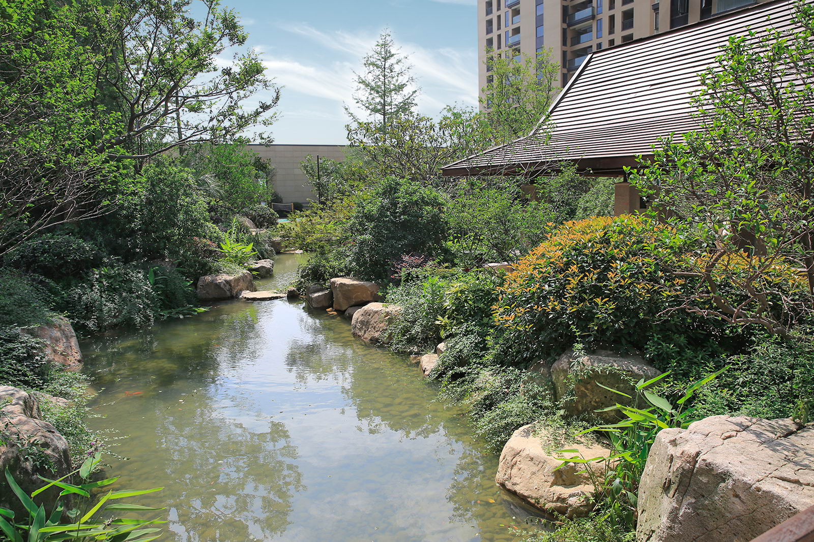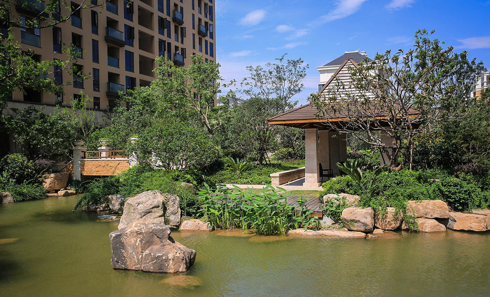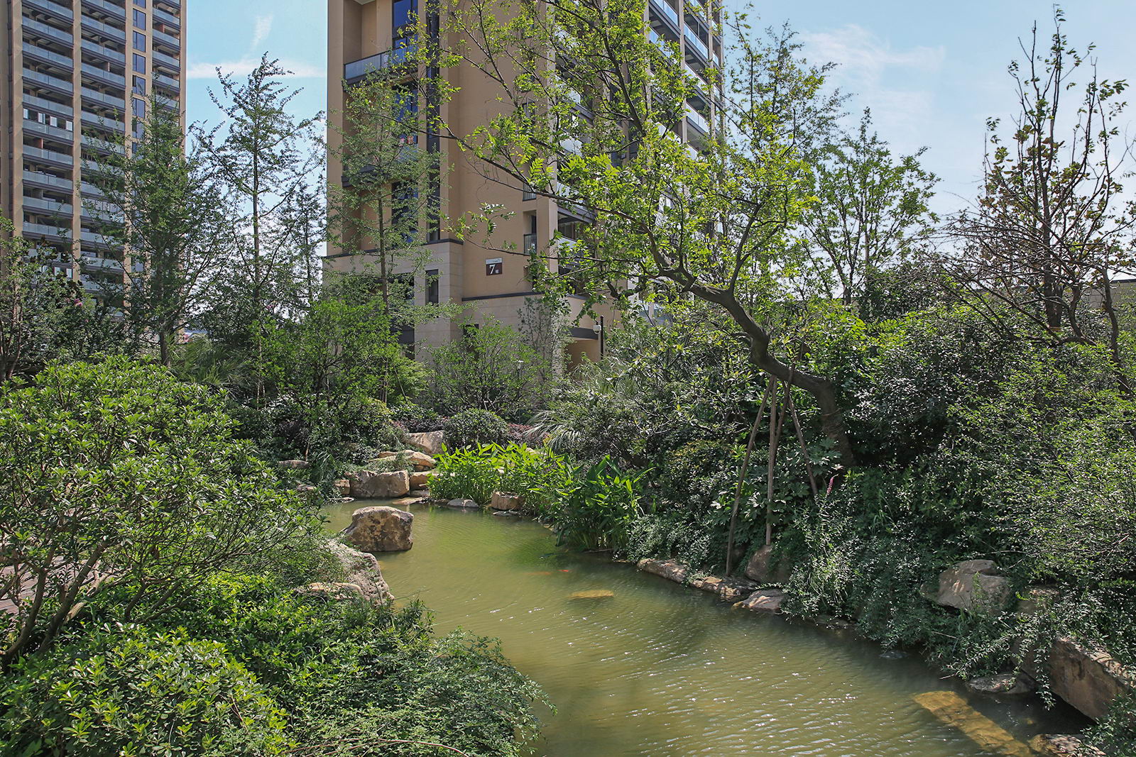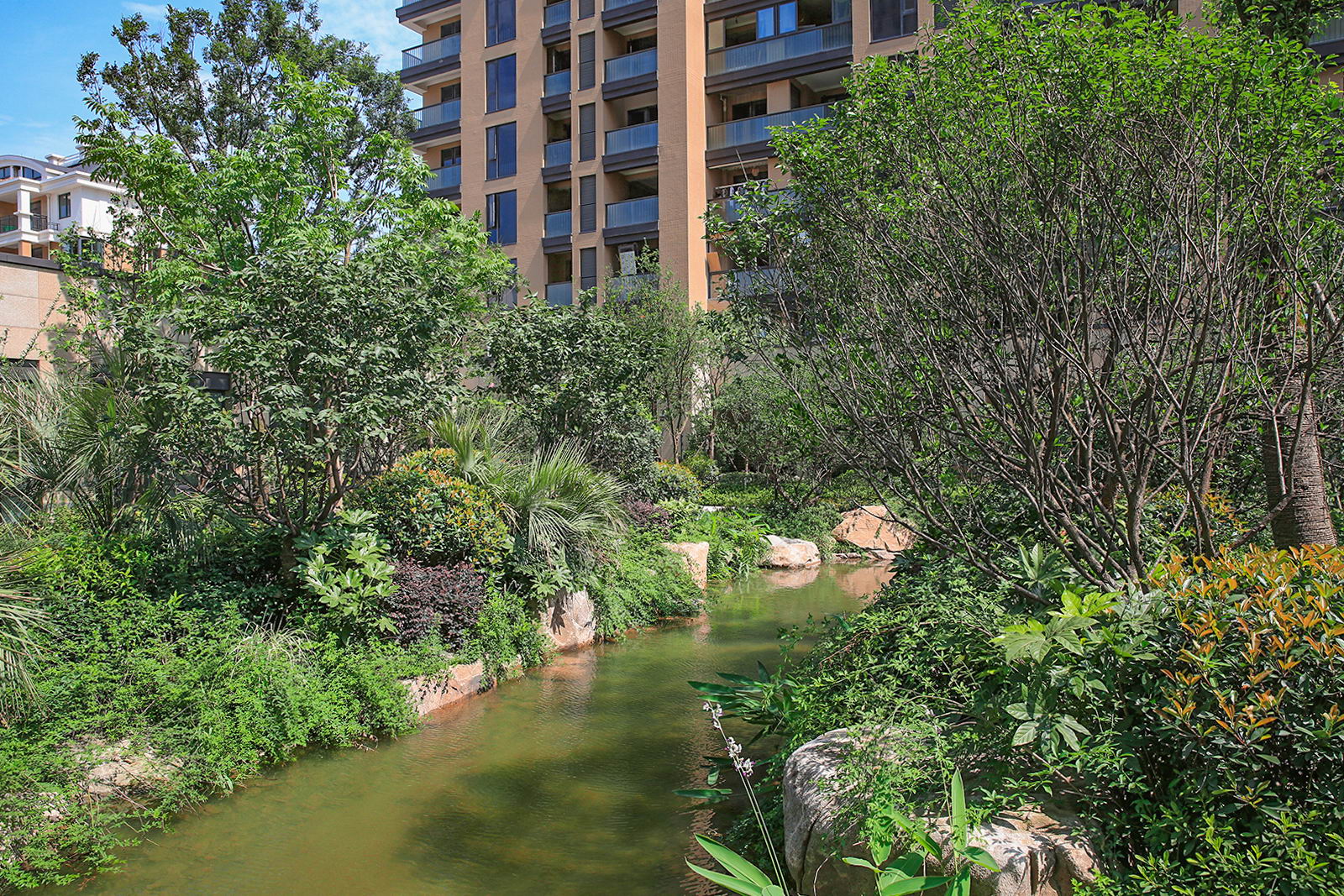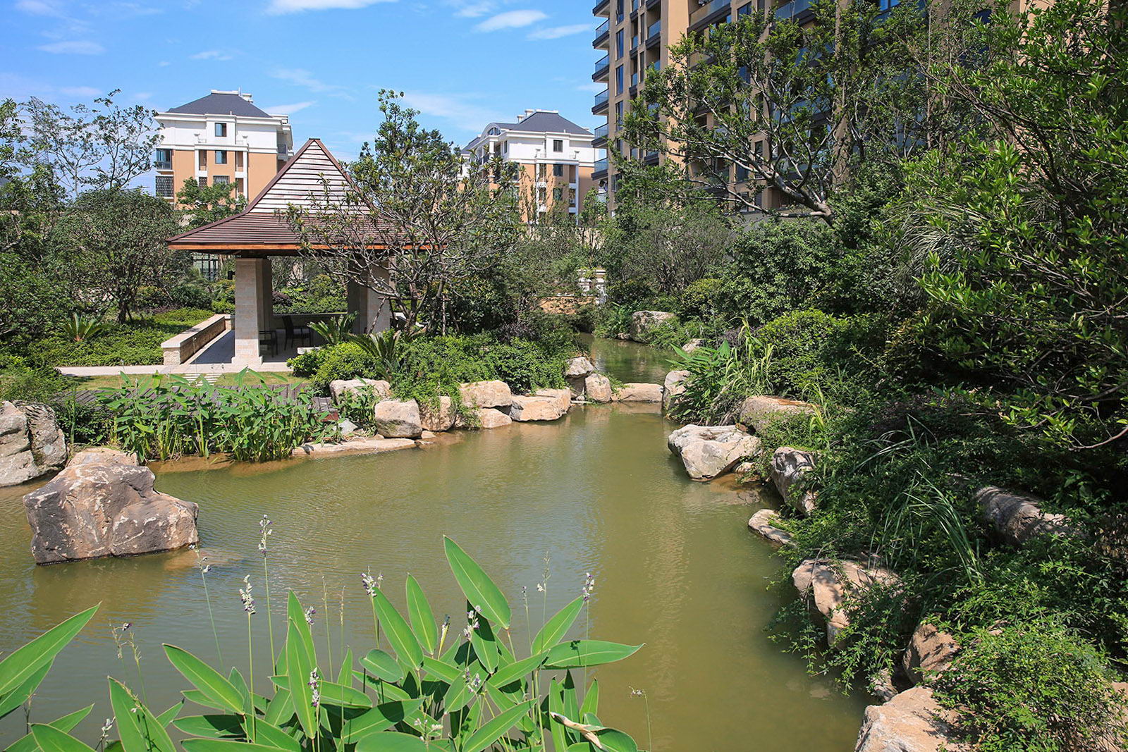 婉約的水系靈動變化,植物沿用東南亞風(fēng)情配置手法,自然野趣,營造一種氛圍極其輕松的,溫潤、自然的都市野奢性生活場景。