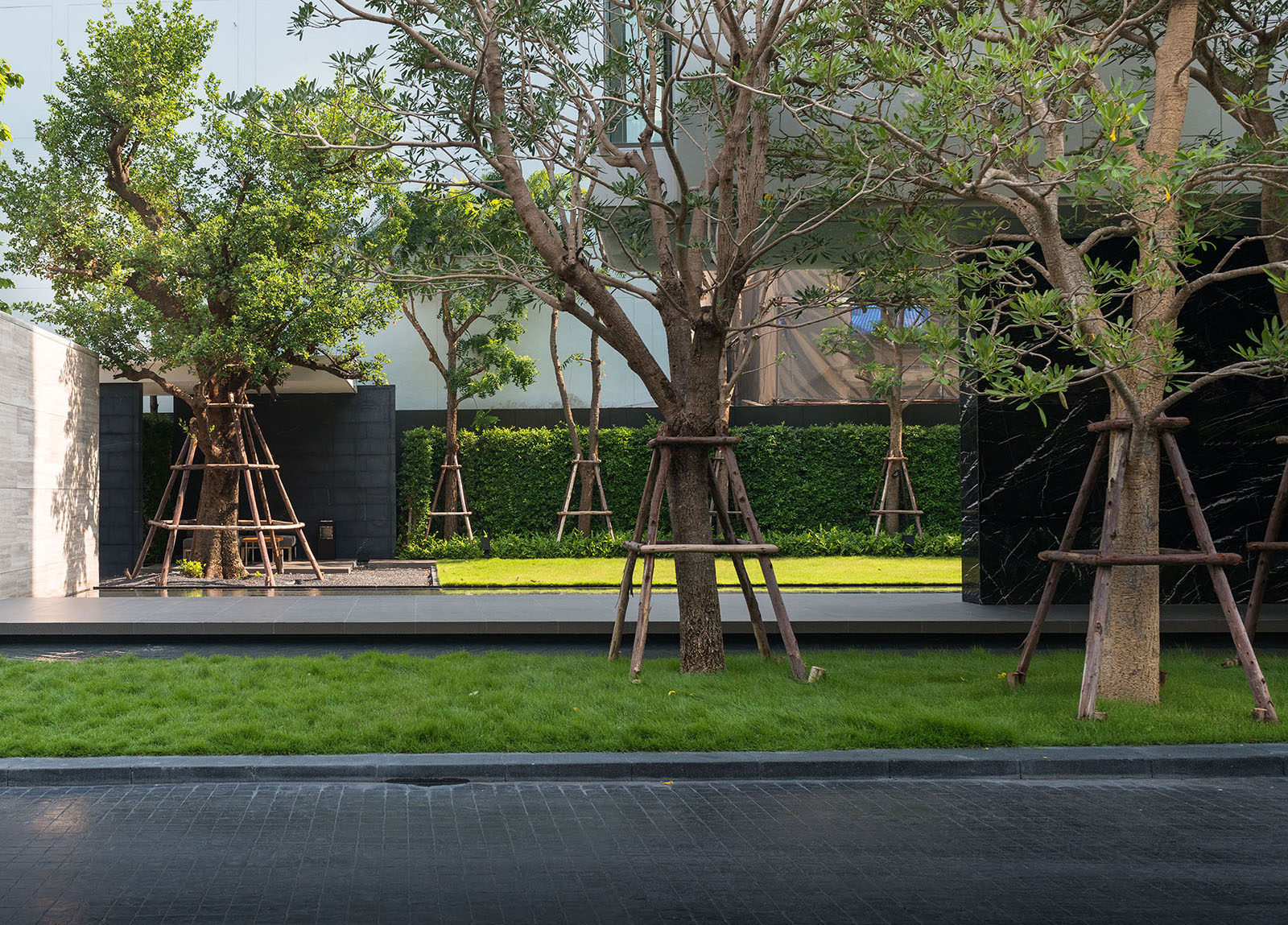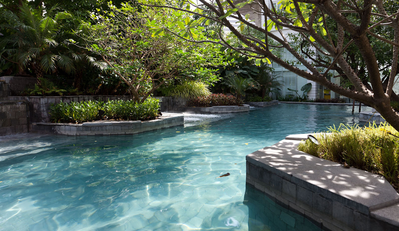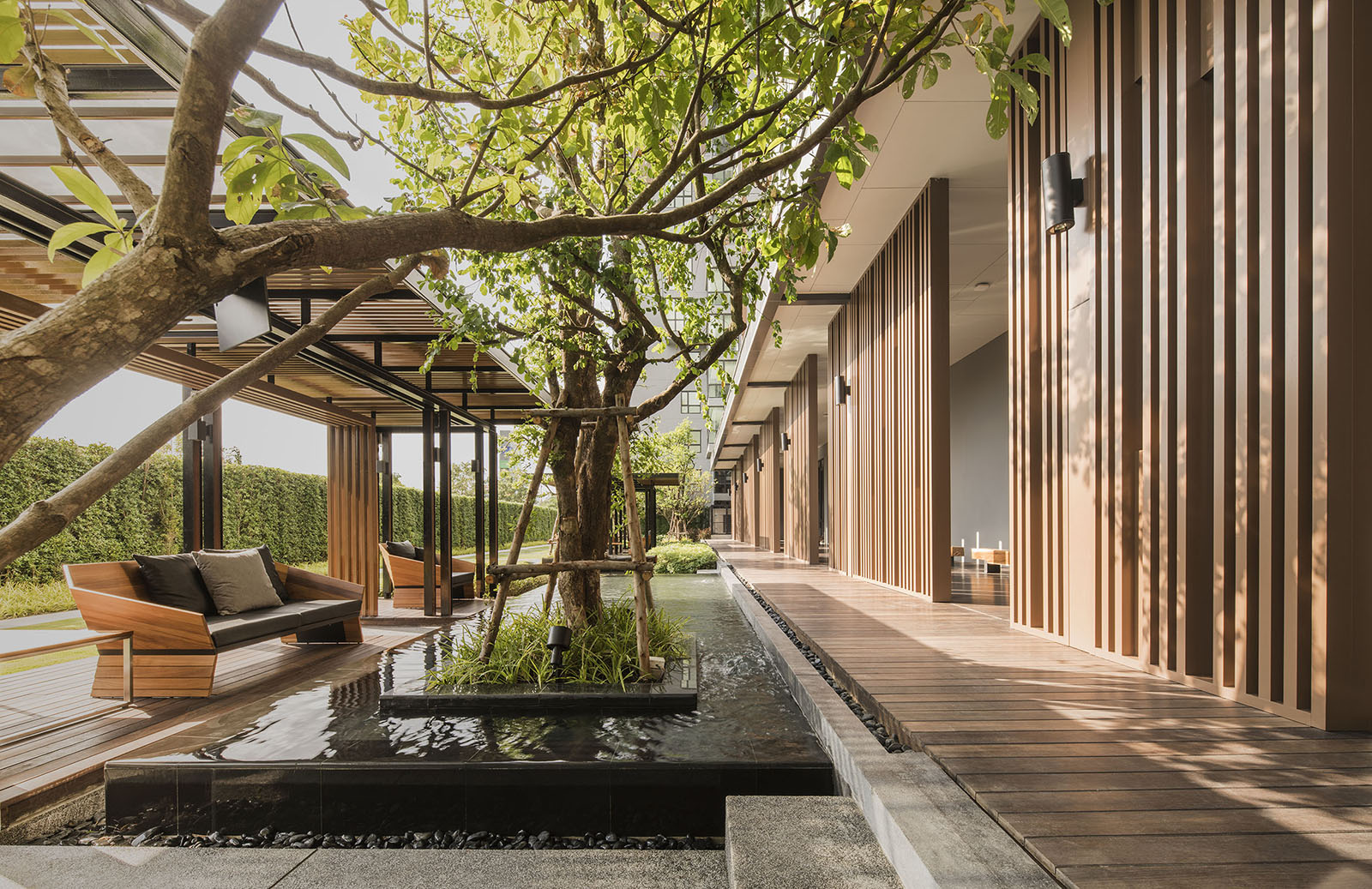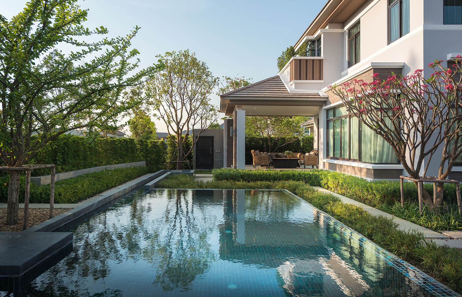 景觀設(shè)計時我司專門組織設(shè)計是遠(yuǎn)赴新加坡游學(xué),深入理解晉合集團(tuán)開發(fā)理念,將新加坡的特別濃郁的度假式的景觀思維與傳統(tǒng)的蘇州園林的文化意蘊相結(jié)合,并且在在公共區(qū)域之外,別墅庭院采用統(tǒng)一風(fēng)格韻味下不同的針對性、定制型設(shè)計,最后表現(xiàn)出來的即是晉園別墅這種極具具有東方詩意、度假風(fēng)情的稀缺純墅區(qū)景觀。景觀領(lǐng)域的成功,大大增強了別墅本身的價值,也是后來墅區(qū)受惠于金雞湖版塊之外產(chǎn)生極高溢價的另一重原因。