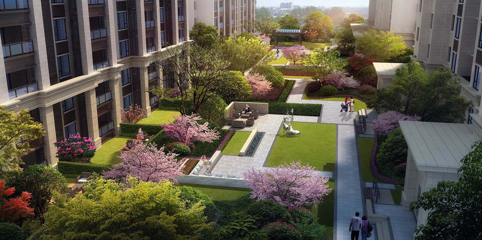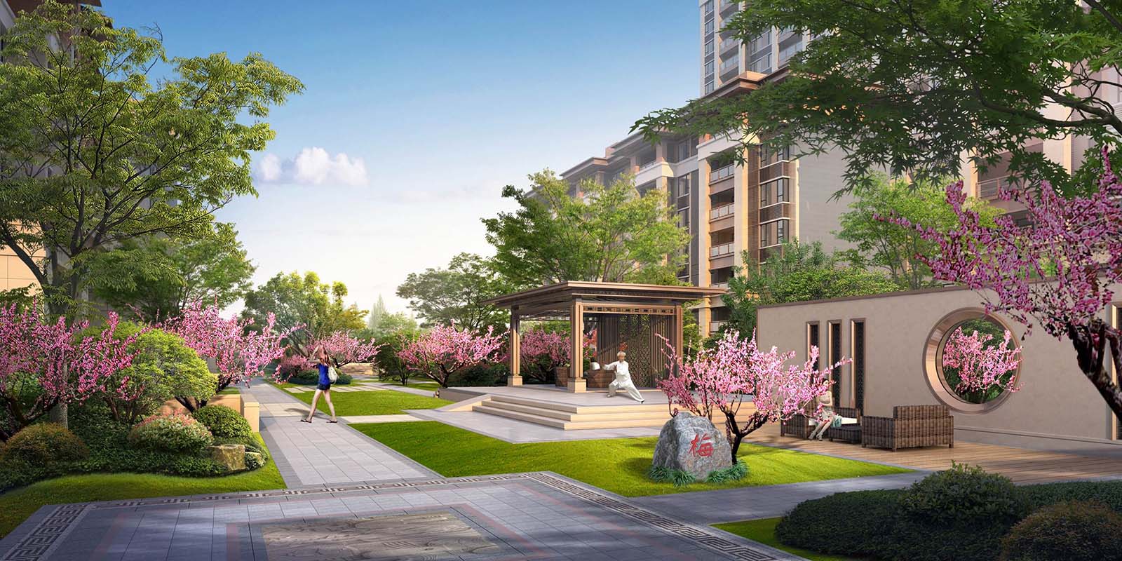 花園洋房區(qū)汲取江南園林坊巷精髓,采用五進(jìn)三坊六巷的歸家秩序,“疏影橫斜水清淺,暗香浮動(dòng)月黃昏。”坊巷花開(kāi),可緩歸矣。