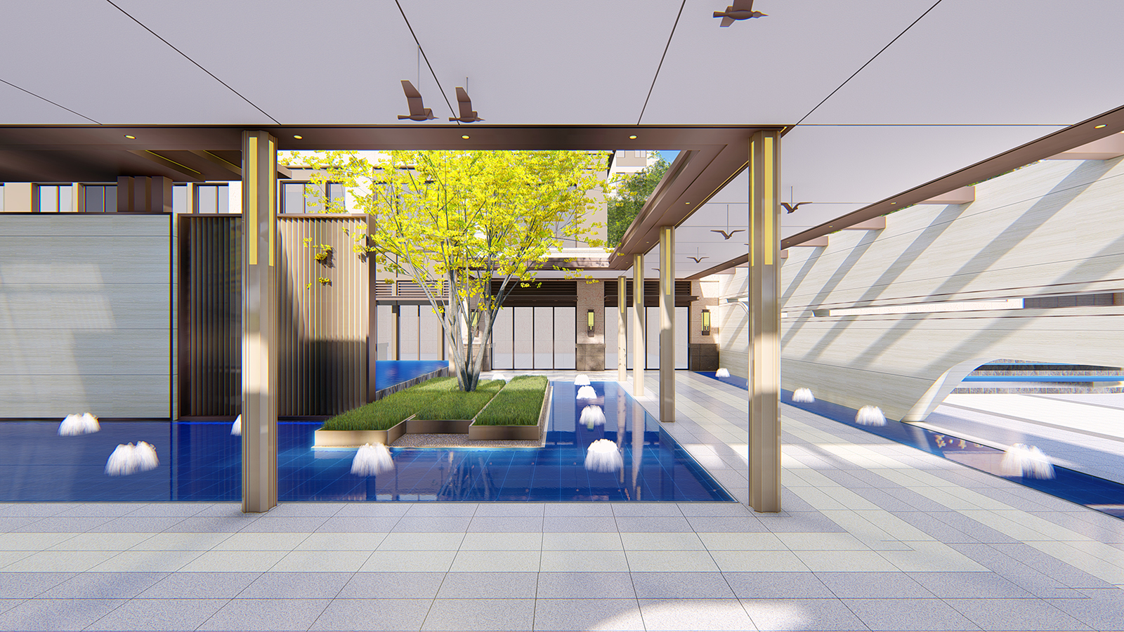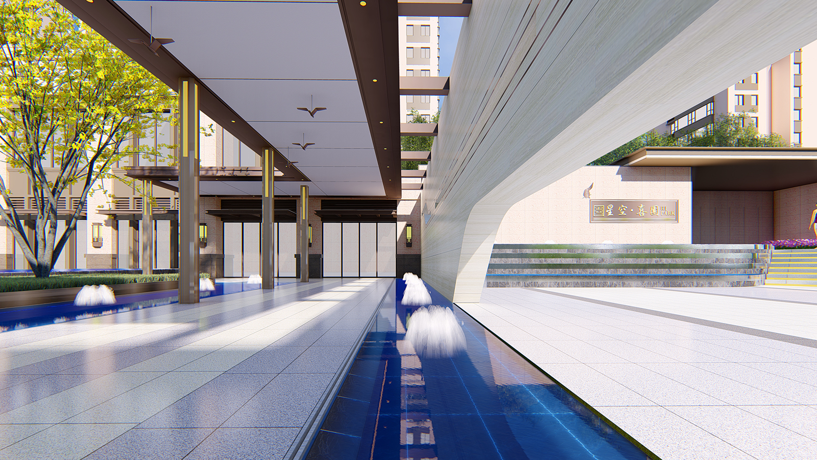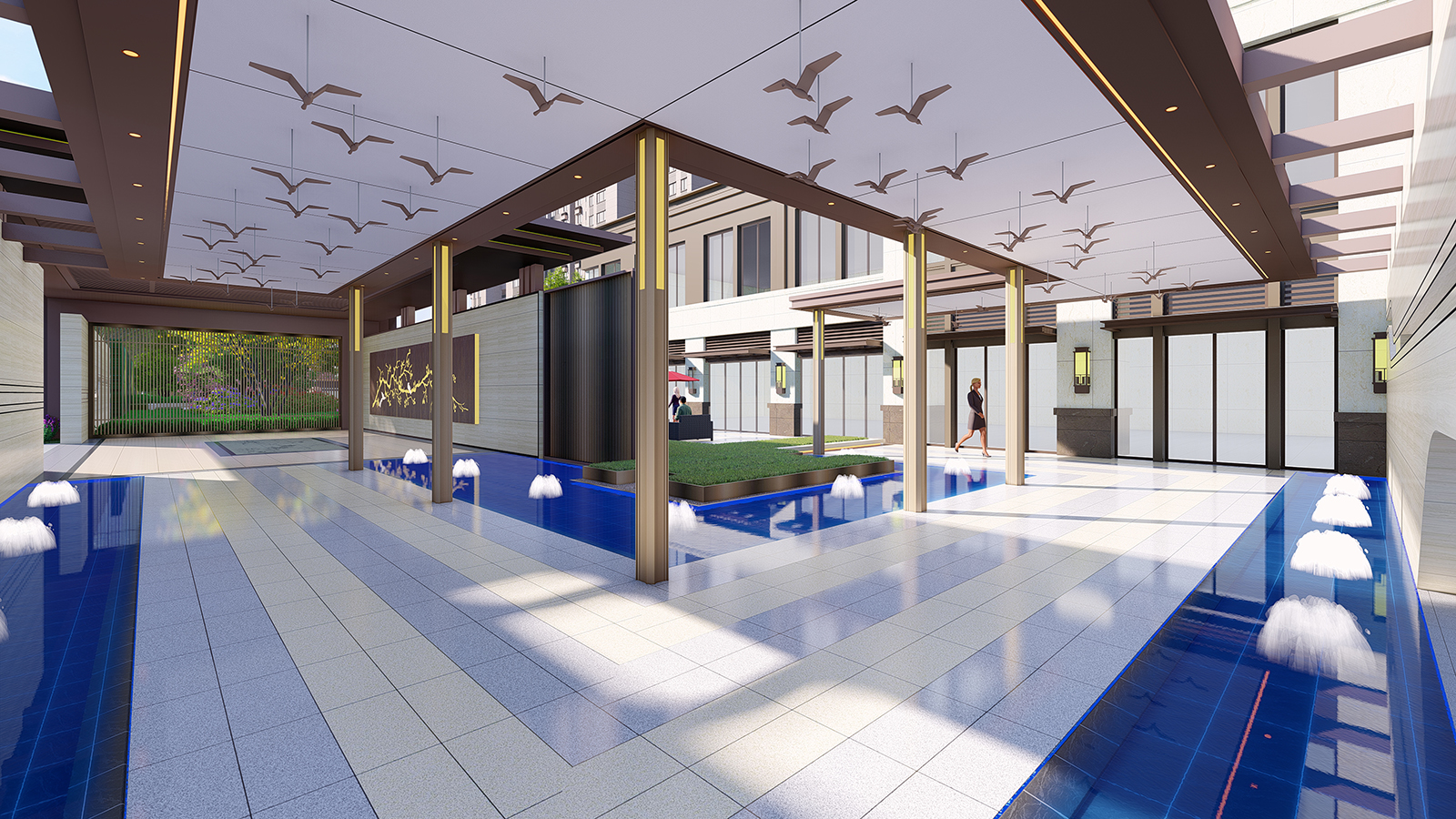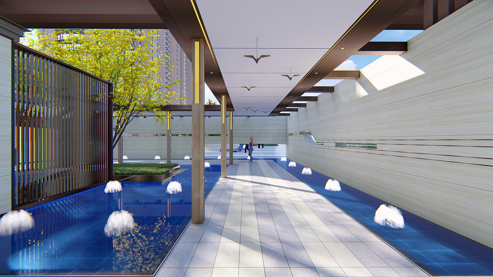 迎賓廣場平坦開闊,疊水水景與臺階組合現(xiàn)代、精致、優(yōu)雅,水景布置有鵲歸巢主題雕塑,禮迎業(yè)主歸家,彰顯小區(qū)尊享品質(zhì)。