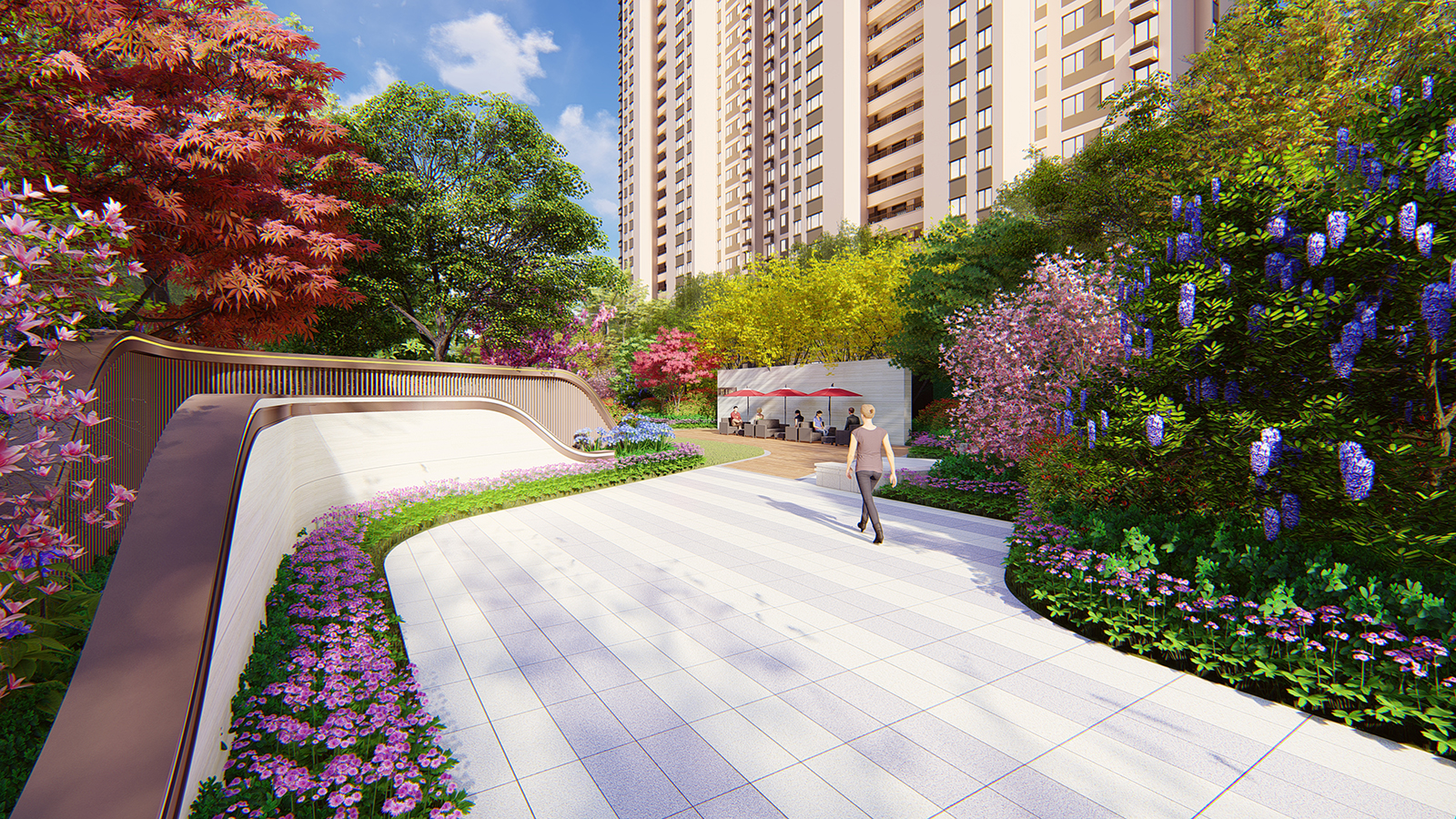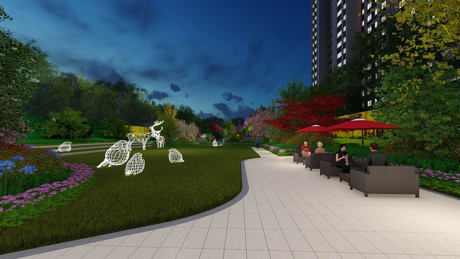 置業(yè)顧問引導客戶到達休閑平臺,空間開闊,綠植分布周圍,對景草階現(xiàn)代新穎,草坪上散布的藝術(shù)裝置增添景觀亮點,為客戶創(chuàng)造心曠神怡的身心感受,品味整個示范區(qū)的優(yōu)雅品質(zhì)。
