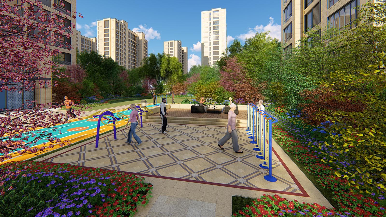 老人休閑組團包含太極健身區(qū)、棋牌娛樂區(qū)、靜養(yǎng)休閑區(qū)三大主題空間,區(qū)塊設置在最為安靜雅逸的地塊北區(qū),太極健身區(qū)在太極健身廣場設計太極點位,方便老人展開太極運動,通過對于淄博當?shù)厣盍晳T的深度調(diào)研,特別設計了棋牌娛樂空間,方便鄰里間在茶語飯后休閑時間,切磋棋牌游戲,將具有療養(yǎng)養(yǎng)生的性質(zhì)的香花植物,開花喬木在區(qū)塊布置,提升老人的樂觀精神與生活活力,給老人創(chuàng)造一個極悠然、祥和、安寧的休憩、養(yǎng)生生活空間。