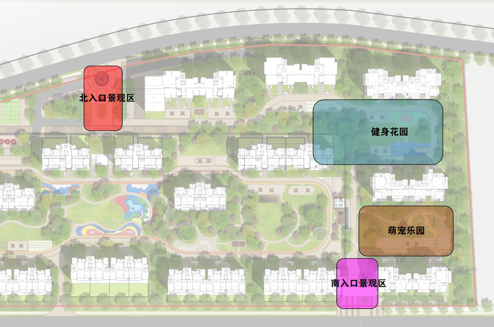 高層區(qū)以高端人才為目標群體,宅間組團設置以萌寵樂園、健身花園為主空間,配套設計多個宅前休閑空間的景觀功能區(qū),契合業(yè)主群體生活起居習性。