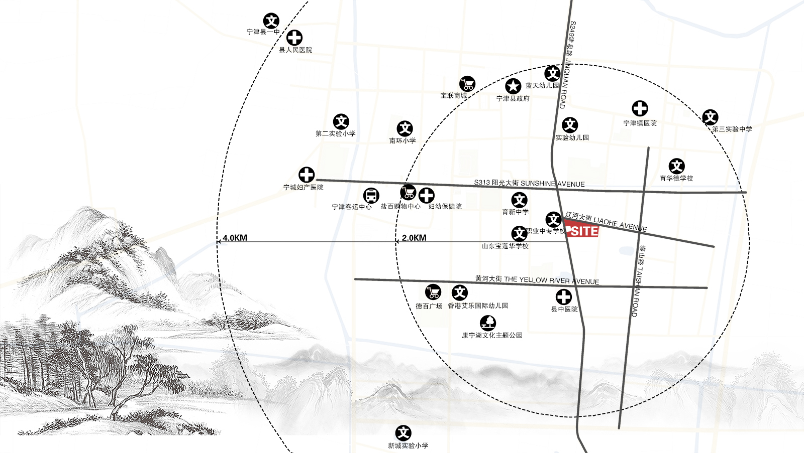 德州市位于黃河下游,山東省的北大門。歷史上,德州就是京杭大運河的一個重要碼頭,自古有“九達天衢”、“神京門戶”之稱,京滬鐵路、石德鐵路和德龍煙鐵路在此交匯,是華東、華北重要的交通樞紐。項目位于德州核心區域,正門北面遼河大街,中正巍峨,氣勢雄奇,得天獨厚?;诘轮莸赜蚝晚椖慷ㄎ唬覀儼驯狈綀@林的莊嚴威儀與南方園林的風雅婉約相結合。